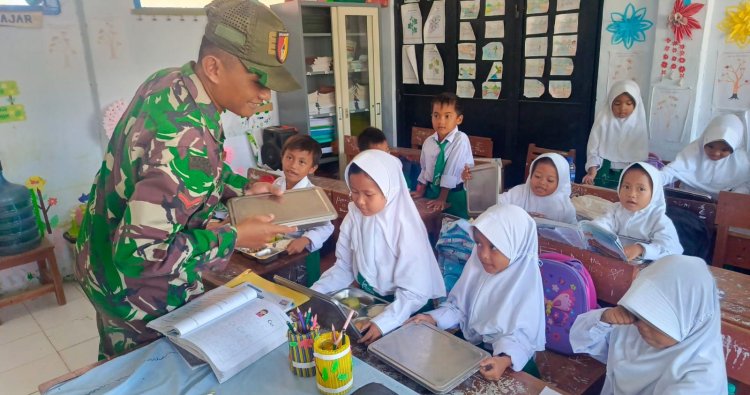 Kopda Hendrik menyampaikan bahwa kehadiran Babinsa dalam kegiatan tersebut bertujuan untuk memastikan program berjalan dengan tertib, aman, dan tepat sasaran, sekaligus memberikan motivasi kepada para siswa agar selalu menjaga pola makan sehat.